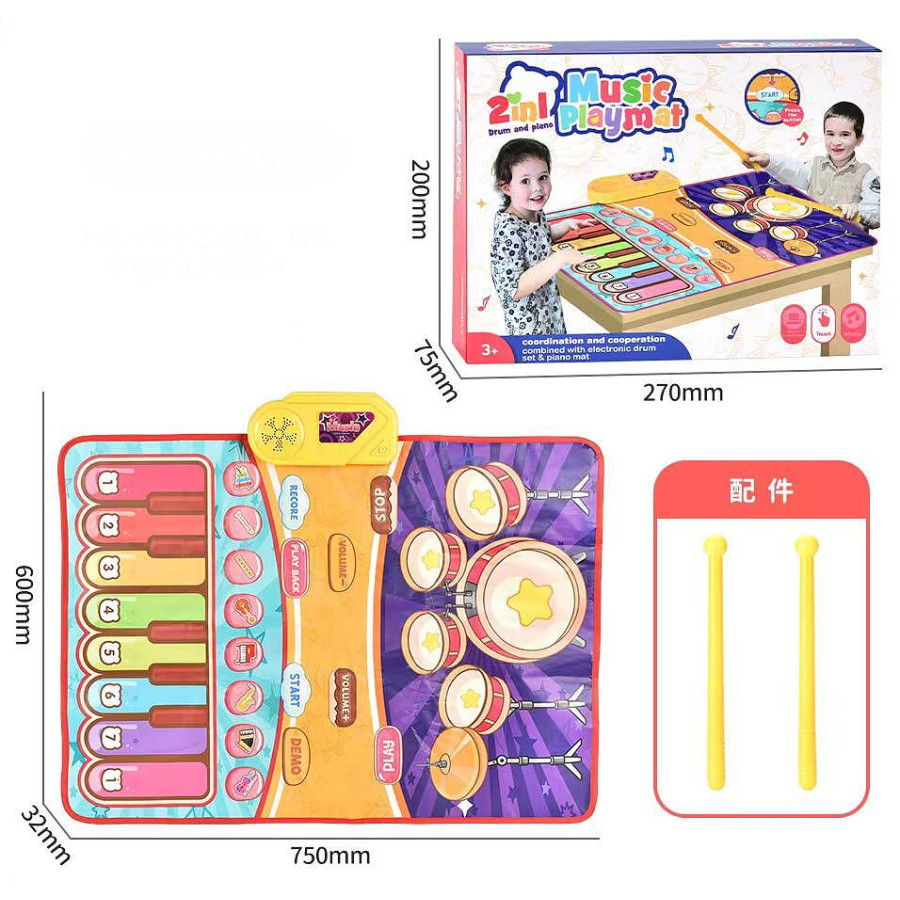 Интерактивна музикална постелка „2 в 1“ с функции на пиано и барабани. Тя е предназначена за деца над 3 години и подпомага развитието на координацията и чувството за ритъм чрез игра.