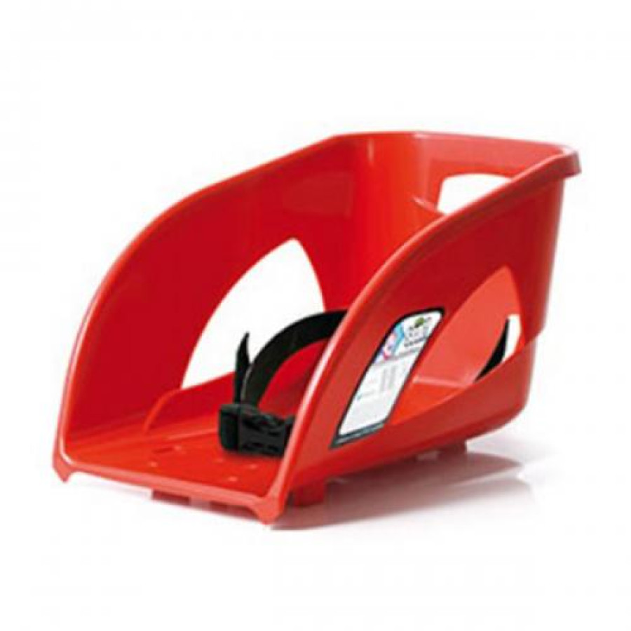 Седалката е оборудвана с колани и е подходяща за по-малки деца.