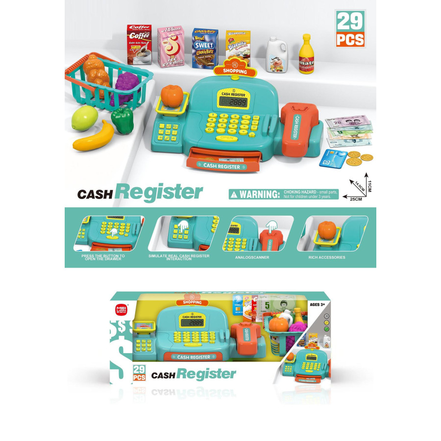 Тази детска каса за магазин е подходяща за деца над 3 години. Изработена е от безопасни и нетоксични материали, отговарящи на всички стандарти за безопасност на детските играчки.