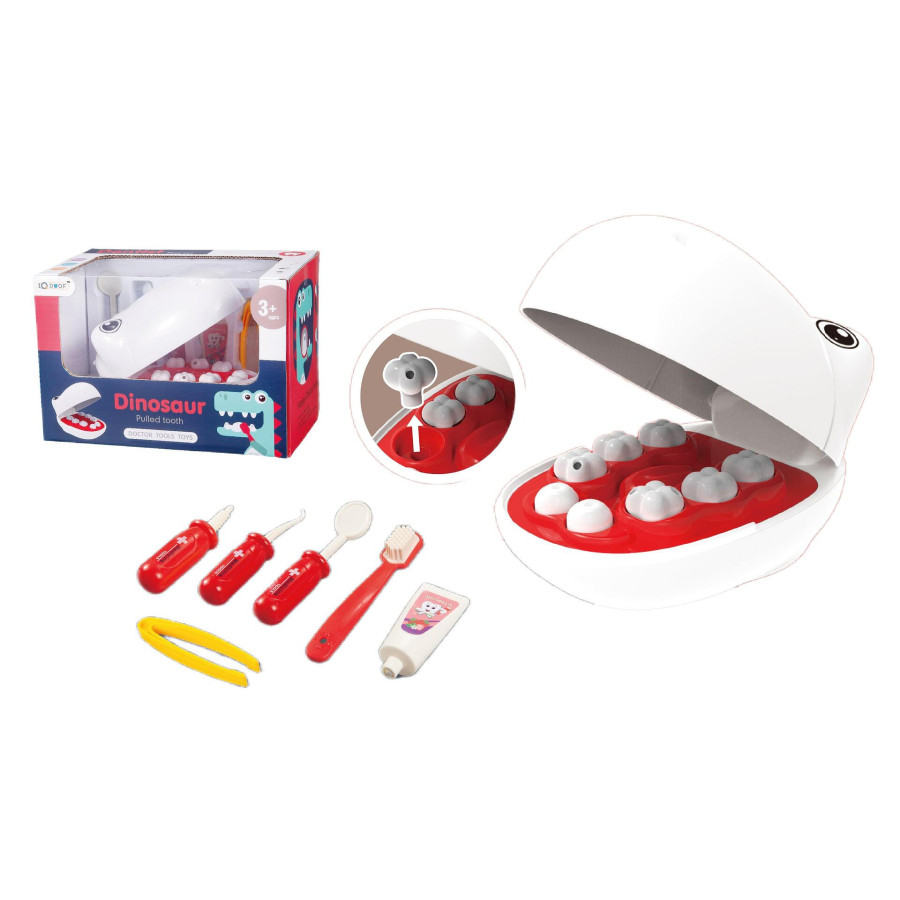 Този детски зъболекарски комплект - Динозавър ще помогне на малчуганите да научат повече за грижата за зъбите, докато се забавляват! Комплектът включва различни инструменти и аксесоари, с които детето може да играе на зъболекар и да се грижи за „зъбите“ на динозавъра.