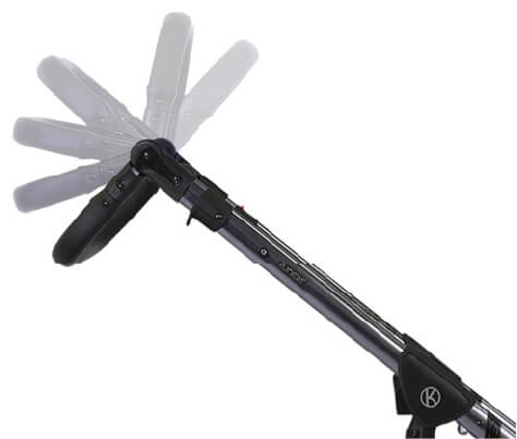 Регулируемата дръжка се адаптира към различни височини, осигурявайки комфорт както за високи, така и за ниски хора. Тапицерията от еко кожа осигурява сигурен захват.