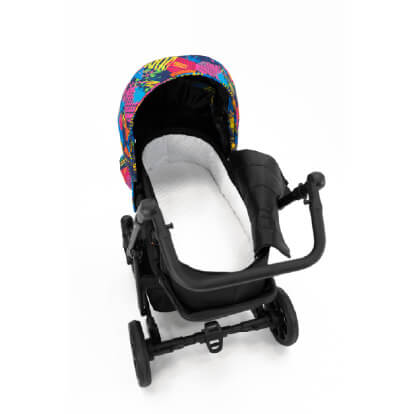 Бебешката вложка се закрепва директно към разгънатата седалка на количката.