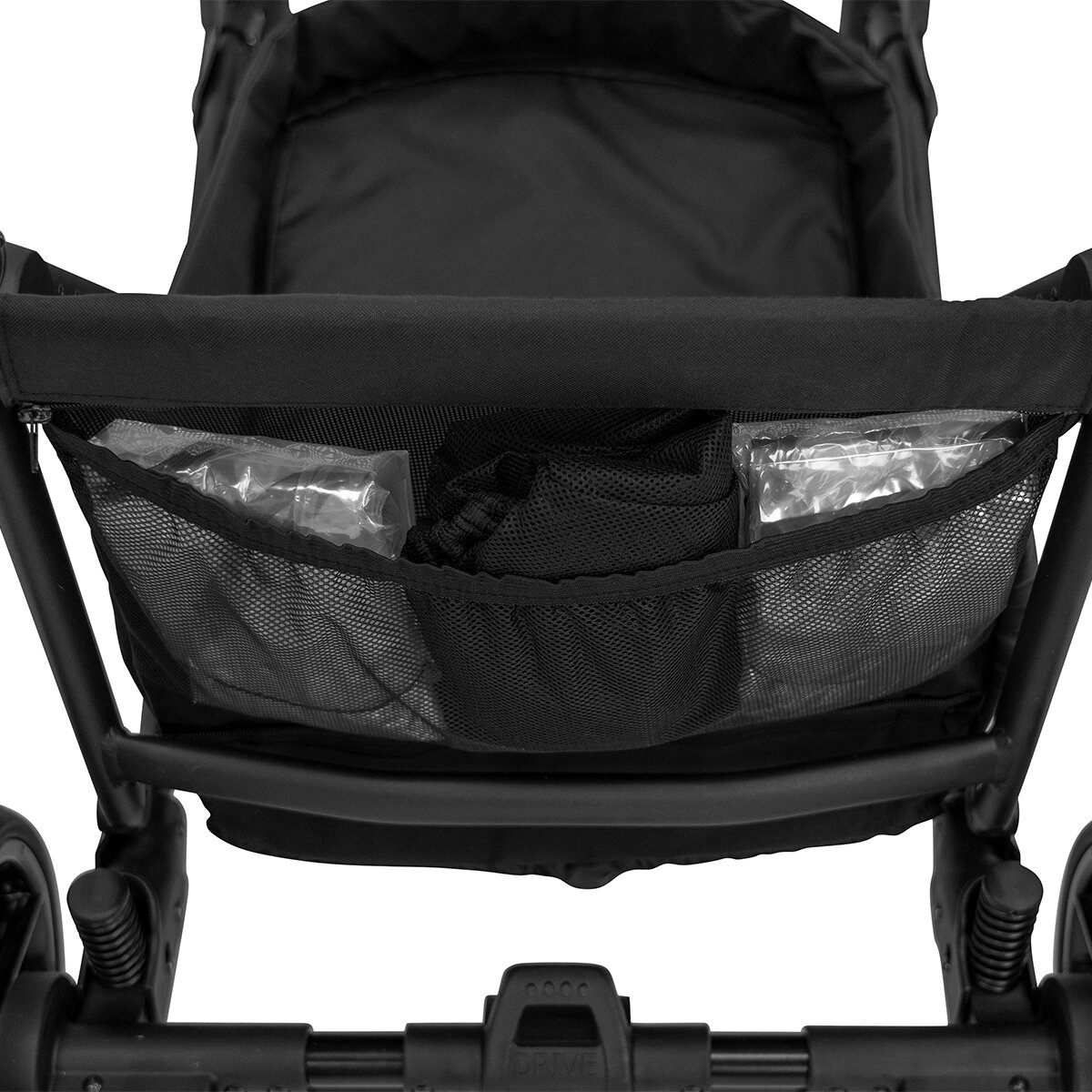 Детска количка Brav Duo е оборудвана с голям кош, който побира всички необходими неща за семейството. Удобният размер ви позволява да съхранявате покупки или основни вещи, а допълнителните джобове улесняват съхранението на аксесоари като филм за дъжд или мрежа против комари.