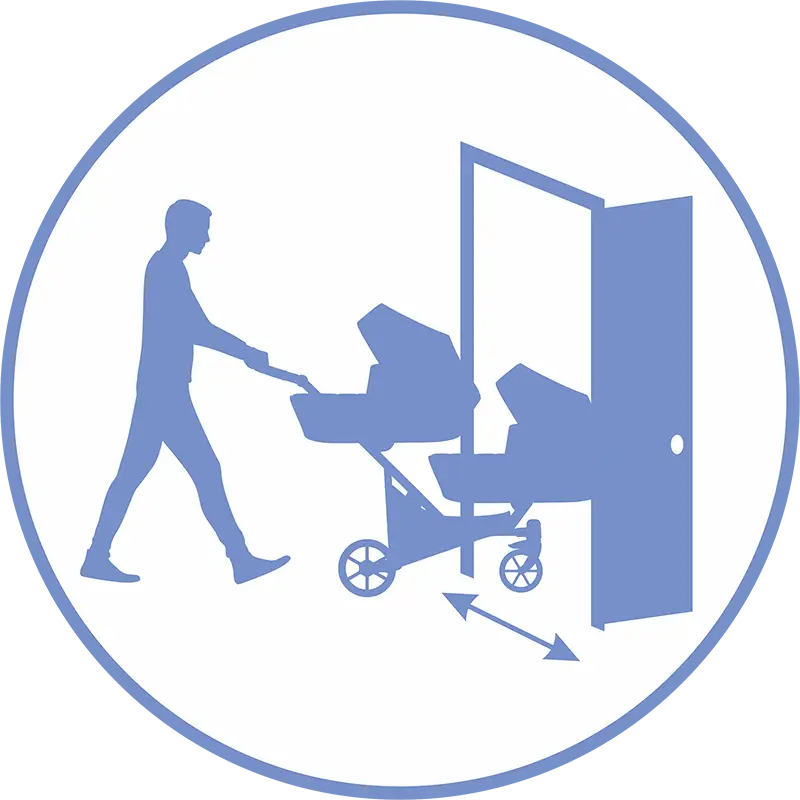 Със системата дете по дете можете лесно да влезете във всяка врата, да се возите на асансьор и удобно да маневрирате между рафтовете на магазините, докато пазарувате.