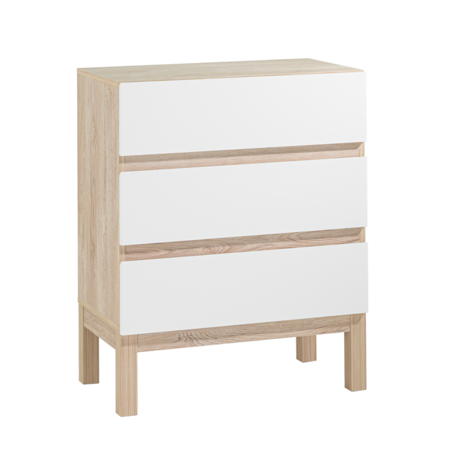 Скринът за дрехи Palermo с три просторни чекмеджета е стилно и практично решение за организиране на всяко съвременно жилище. Той съчетава изчистен минималистичен дизайн с висока функционалност, което го прави идеален избор за спални, детски стаи или модерни гардеробни пространства. Благодарение на баланса между топъл дървесен декор и бели фронтове, скринът внася светлина, уют и визуална лекота в интериора.