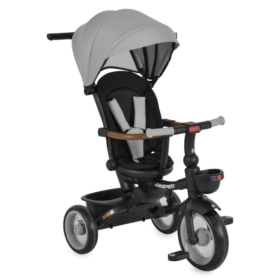 Триколка Jasper сив – 360° въртяща седалка и родителски контрол за деца над 10 месеца