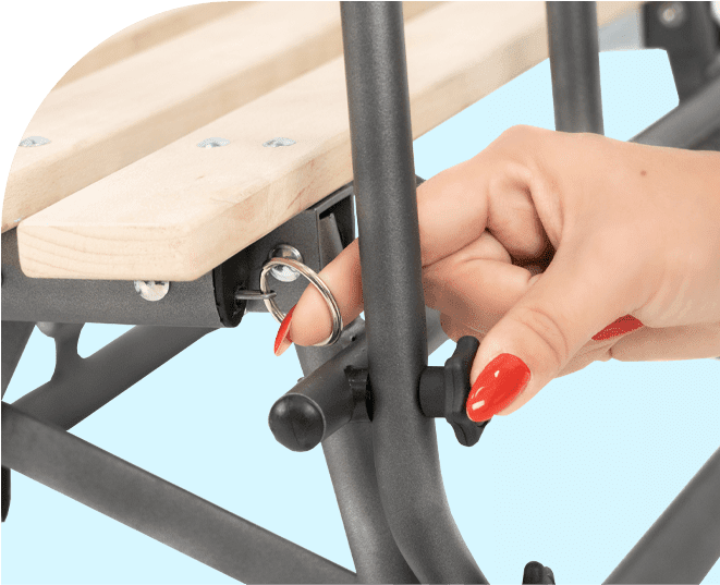 Шейната SPACE е с вграден предпазен механизъм, който предпазва шейната от сгъване по време на каране. С помощта на механизма можете да сгънете шейната и да я транспортирате лесно. Когато е сгъната, шейната заема малко място, така че лесно можете да я поставите в багажника и да я вземете със себе си на почивка с цялото семейство.