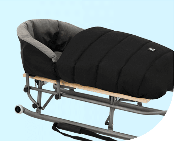 Издръжлива сгъваема шейна SPACE с облегалка и спален чувал. Шейната SPACE е оборудвана с мек детски спален чувал с топла подплата. Спалният чувал е с пришити ципове от двете страни, което ви позволява бързо и лесно да извадите детето от чувала или да разкопчаете горната му част и да се отнасяте към спалния чувал като към мек матрак, предпазващ от студа. Удобен и топъл спален чувал, който работи отлично при всякакви условия. Спалният чувал SPACE sled поддържа оптимална температура, водоустойчив е и предпазва от вятър и студ. Изработен е от дебел и издръжлив материал, който ще стопли Вашето бебе.