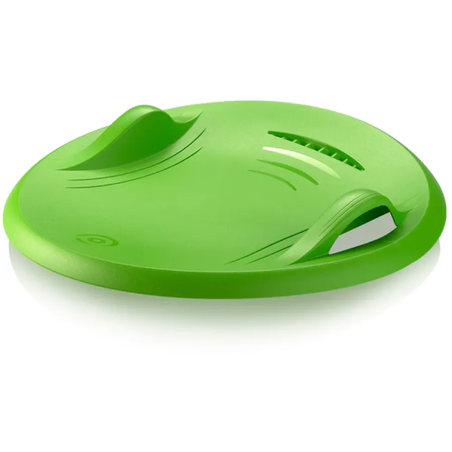 Скибордът е оборудван с контролни линии и стабилизиращи релси в долната част, които позволяват плавни завои и отличен контрол при движение. Ергономичните дръжки осигуряват стабилен захват и предпазват ръцете от контакт със снега. Заоблената форма на борда допълнително защитава пръстите и ръцете, като минимизира риска от наранявания при забавление на пистата.