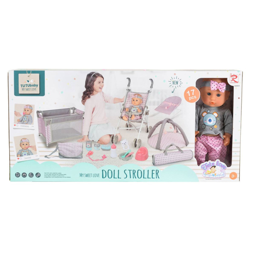 Подарете на вашето дете комплект кукла 36 см с 17 части, който превръща всяка игра в увлекателно приключение! Този сет е създаден, за да вдъхнови малките да се почувстват като истински грижовни родители и да развиват социални умения и креативност.