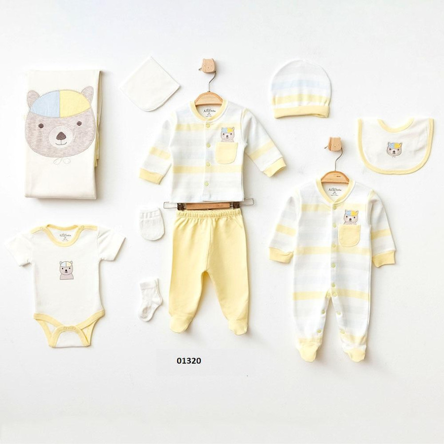 Представяме ви очарователния комплект за изписване от 10 части – Мечо, създаден с грижа за първите дни на вашето бебе. Изработен от 100% висококачествен памук, този комплект осигурява мекота, удобство и нежна грижа за деликатната кожа на новороденото.