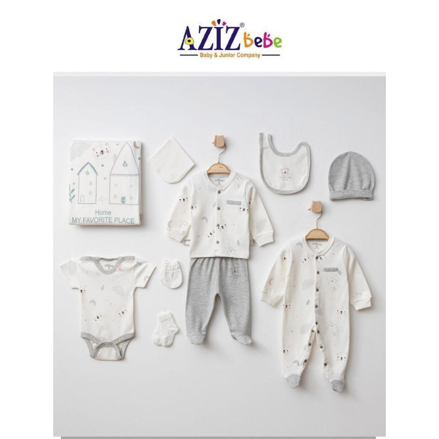 Този комплект от 10 части включва всичко необходимо за специалната и нежна облека на новороденото ви, размерът му позволява да се използва от раждането до тримесечната възраст. Всяка част от комплекта е внимателно изработена от висококачествени материали, гарантиращи мекота и удобство за кожата на бебето ви.
