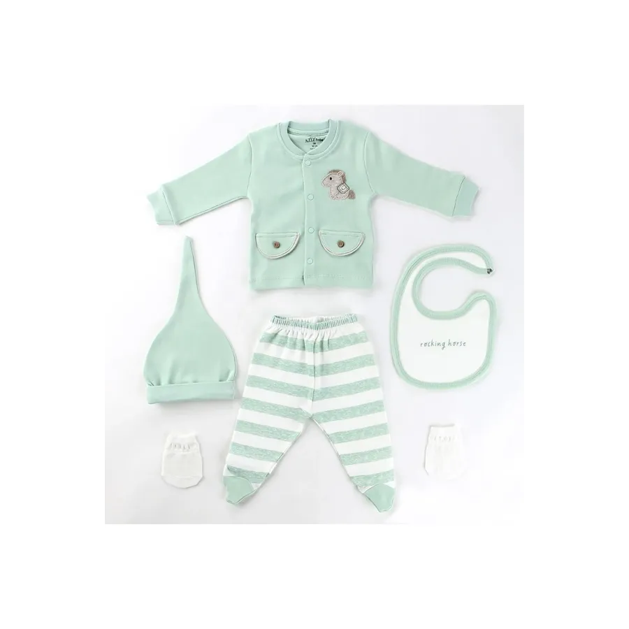 Съчетание от удобство, качество и стил – комплектът за изписване от 5 части – мента и бяло е чудесен избор както за лично ползване, така и като подарък за новородено. Поръчайте сега и осигурете на вашето бебе нежен старт в живота.
