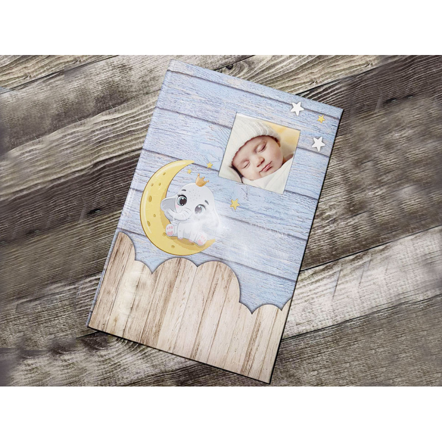 Всеки родител иска да запази спомените от първата усмивка, първата крачка и първия рожден ден. С този персонализиран бебешки албум ще можете да подредите снимките красиво и подредено. Нежният син дизайн го прави перфектен избор за бебе момче, а твърдата корица с джоб за снимка придава индивидуалност и стил.