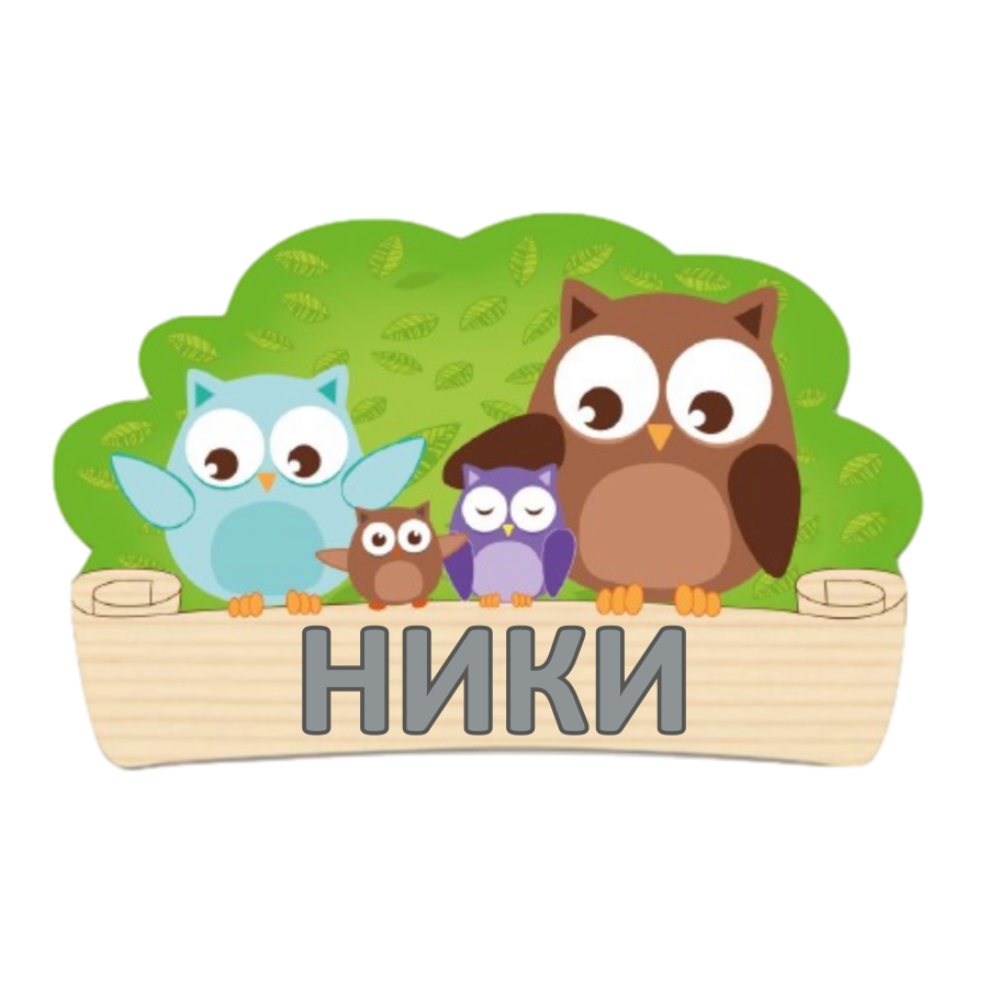 Красива дървена декорация за детска стая с пъстър дизайн Семейство бухал и сови - табела. на която може да изпишете ПЕРСОНАЛНО ИМЕТО НА ДЕТЕТО и да залепите, където си пожелаете. Продуктите са ръчна изработка, боядисани с нетоксични бои на водна основа.