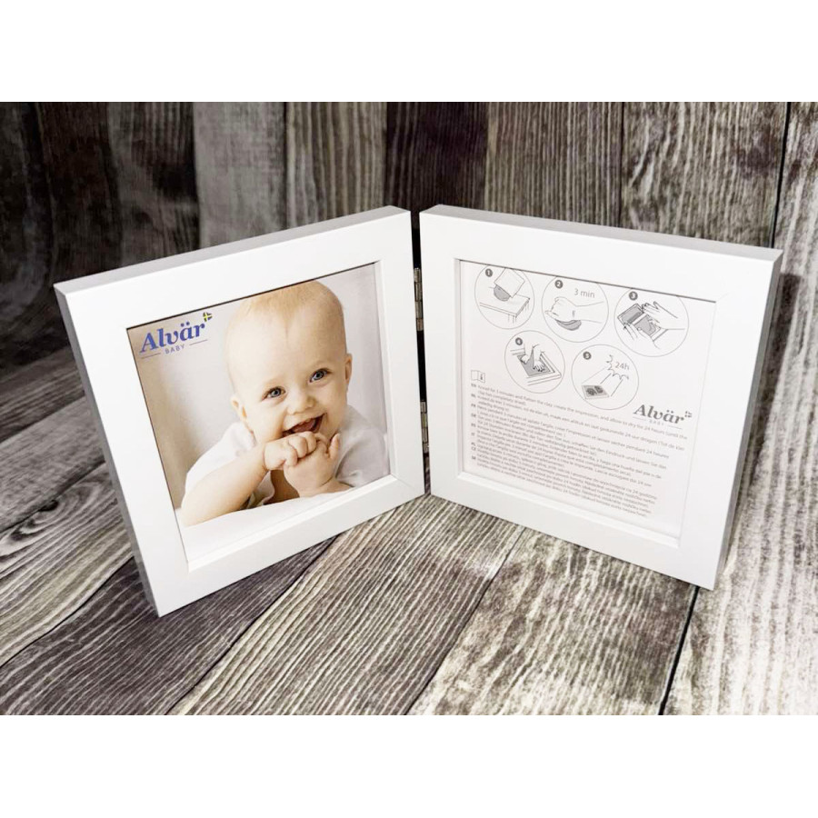 Едната страна на рамката е предназначена за персонална снимка на бебето, а другата – за отпечатък от ръчичка или краче, направен с включената в комплекта глина. Глината е мека, подходяща за бебешка кожа и изсъхва на въздух, без нужда от печене или специална обработка.