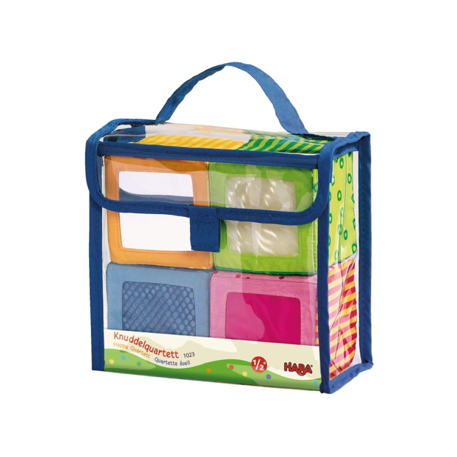 Четири занимателни кубчета,опаковани в прозрачна торбичка,която се закопчава с велкро лепенка (за удобно съхранение) ,общ размер 16х16см.