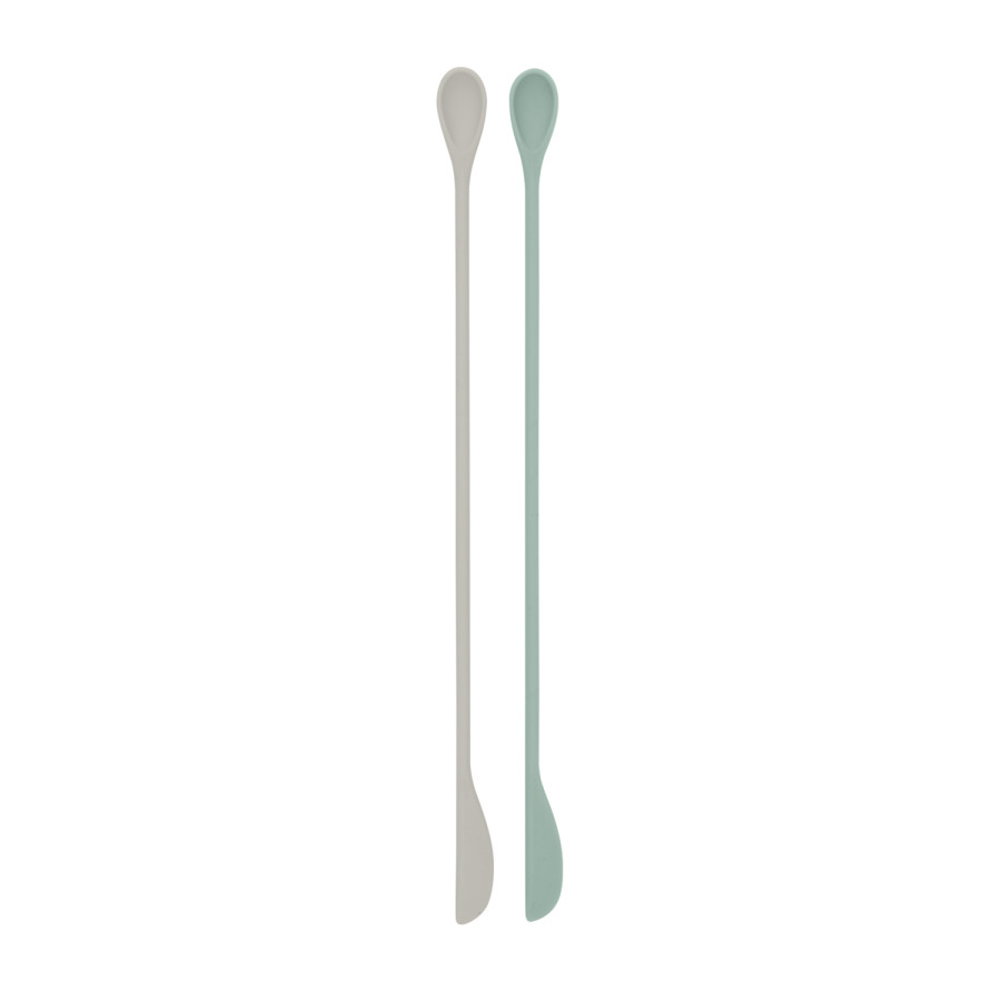 Практичен комплект от 2 броя лъжици за разбъркване Platinum Silicone, създадени за лесно и ефективно разбъркване на течности в бутилки и буркани. Идеални за бебета от самото им раждане, тези лъжици улесняват подготовката на мляко на прах и други хранителни смеси.
