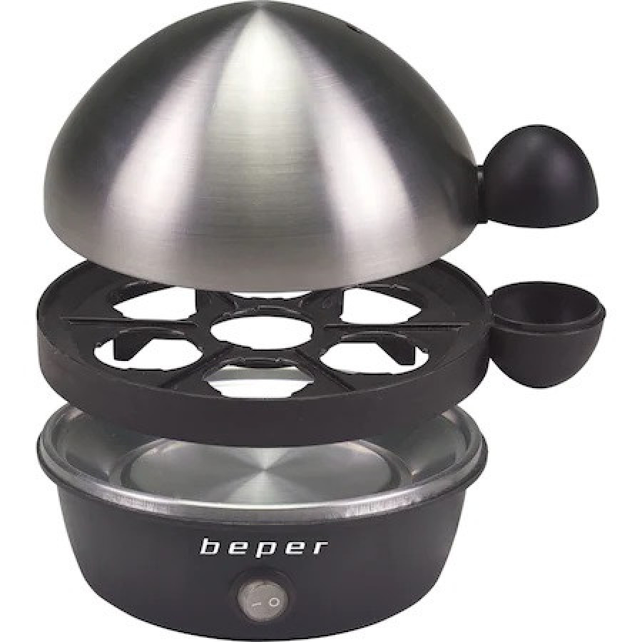 Уред за варене на яйца с ABS корпус и вътрешна тава и капак от неръждаема стомана. С този уред можете да сварите до 7 яйца за няколко минути. Процесът е изключително лесен: просто добавете вода според желаното ниво на готвене, поставете яйцата, покрийте и включете уреда. След приключване на варенето, уредът автоматично се изключва и издава звуков сигнал. В комплекта е включена сваляща се пластмасова поставка за яйца и мерителна чаша за лесно отмерване на водата.