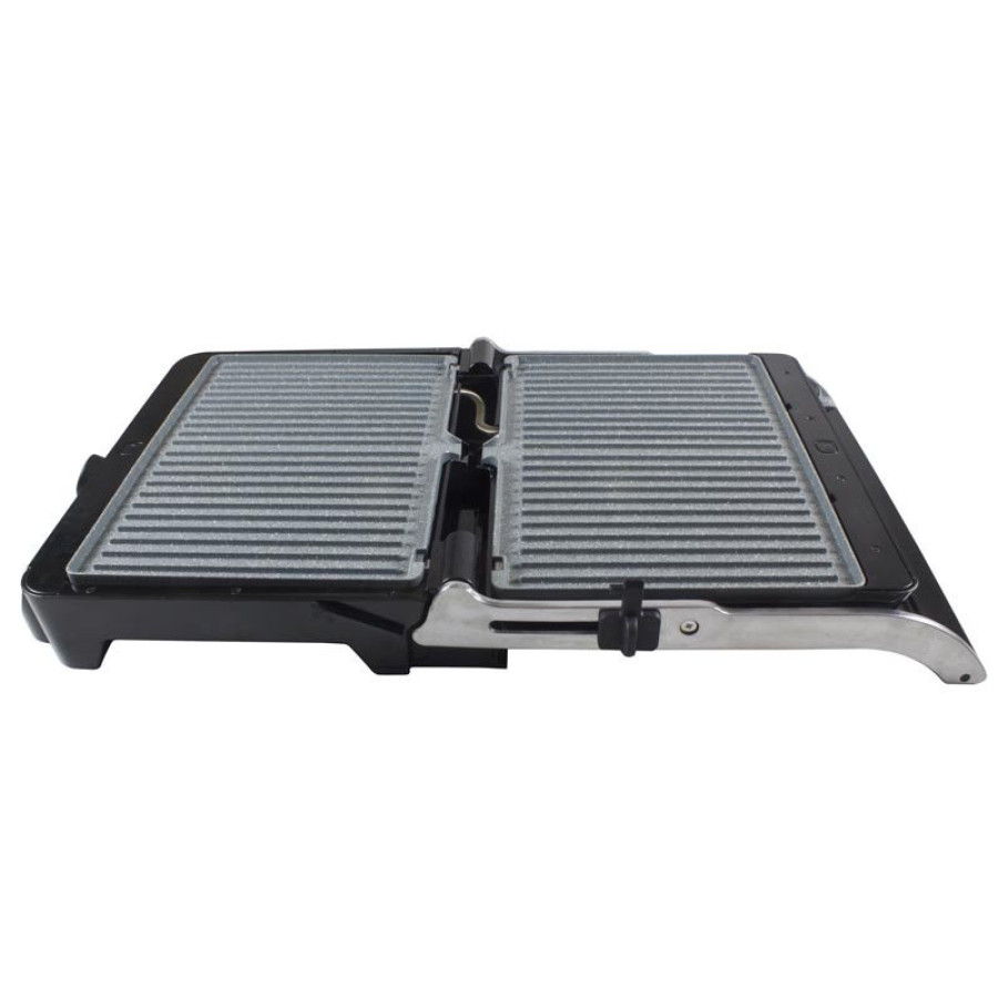 Подвижните и миещи се в съдомиялна плочи, могат да се отварят на 180 °. Изработени са от лят алуминий с покритие от гранит, което не залепва. Има регулируема температура, работна светлина и светлинен индикатор показващ достигната температура. Практичната сгъваема база позволява лесно отичане на мазнините.