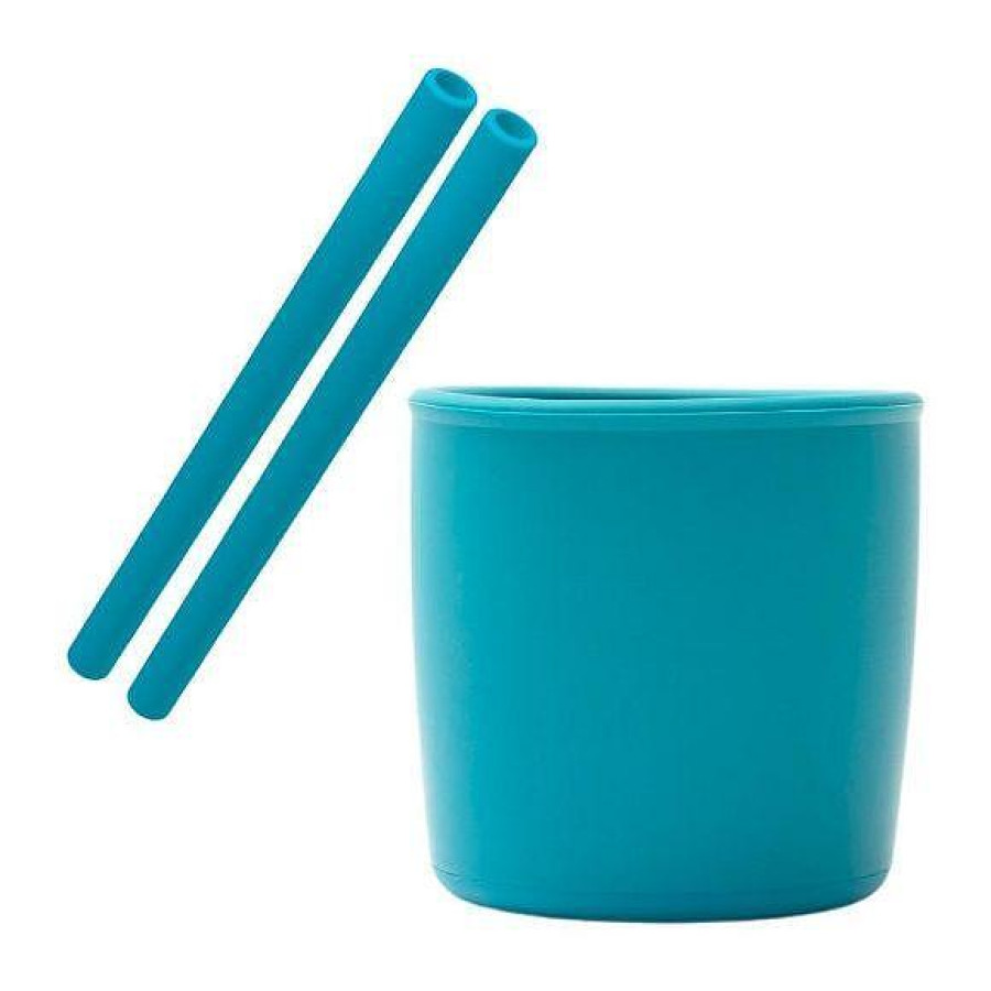 Силиконов комплект за пиене тюркоаз – чаша и 2 сламки (3 части)