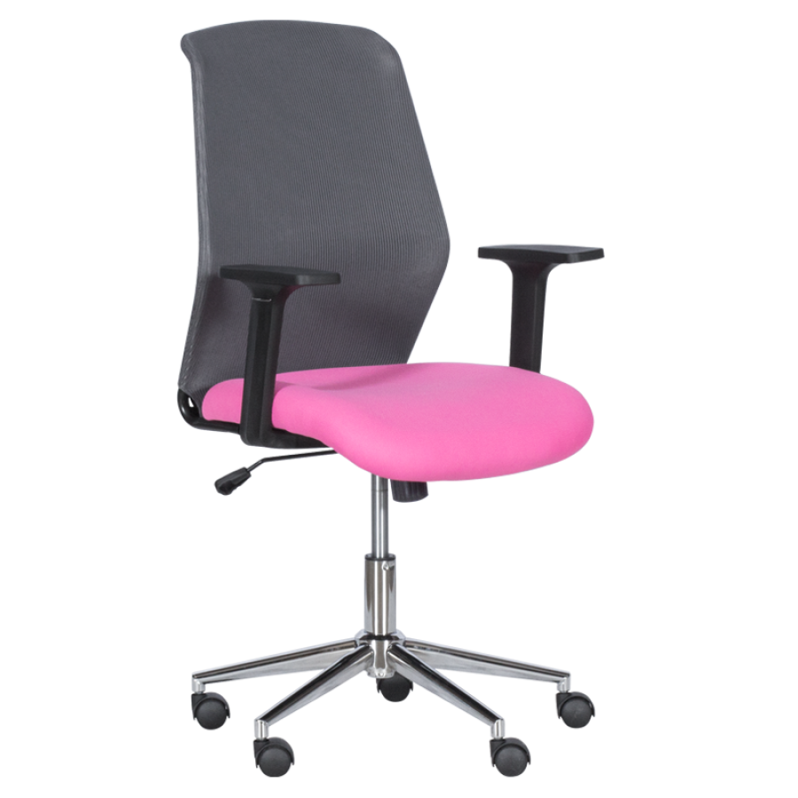 Този детски стол за бюро комбинира ергономичен дизайн с практичност и модерен стил. Идеален е за деца и ученици, като гарантира правилна стойка и удобство по време на учене, рисуване или игри. Цветовата комбинация от сиво и розово добавя свеж и приятен акцент в интериора на детската стая.
