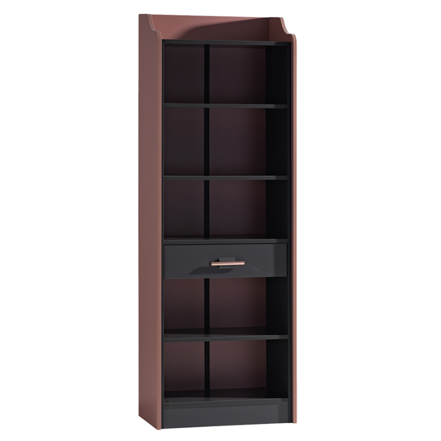 Моделът разполага с 6 просторни рафта и централно чекмедже, което осигурява достатъчно място за организация на всички вещи. Рафтовете могат да се използват както за книги, списания и учебници, така и за декоративни елементи, снимки или сувенири. Всеки рафт издържа до 25 кг натоварване, което гарантира стабилност дори при подреждане на по-тежки предмети.