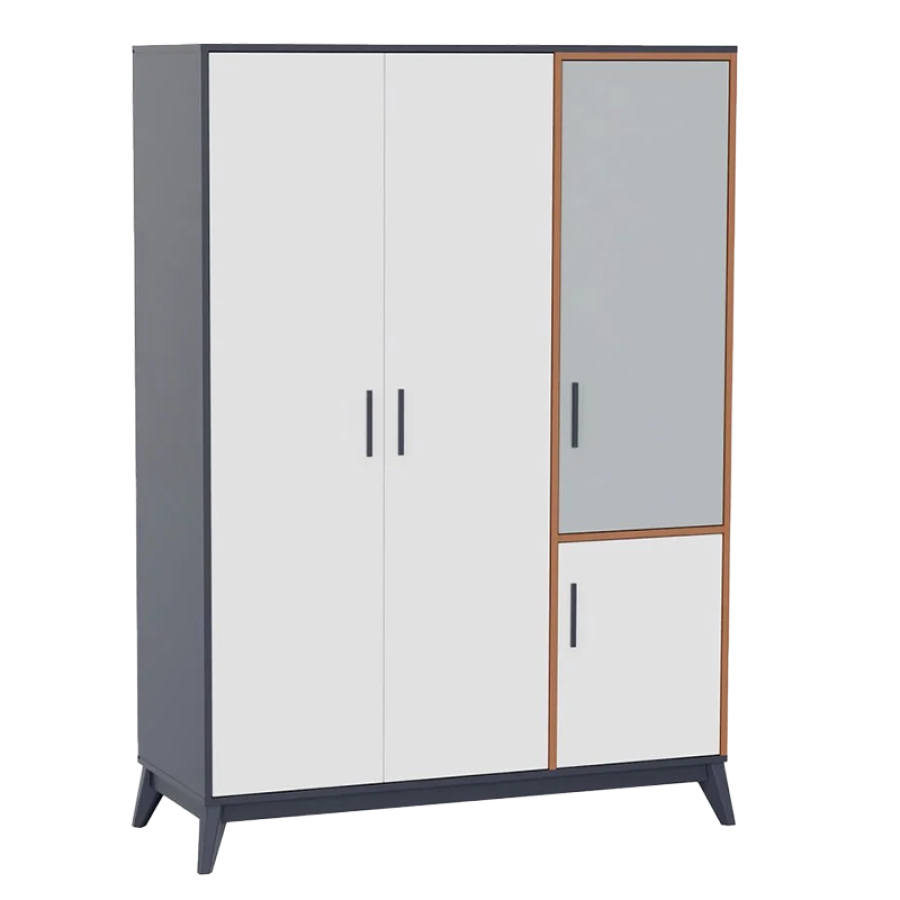 Трикрилният гардероб BREDA съчетава модерен дизайн, просторна организация и високо качество на изработка, за да предложи перфектното решение за съхранение на дрехи и аксесоари в детската, юношеската или спалнята за възрастни. Съчетавайки издръжливи материали, удобни механизми и практични функции, този гардероб осигурява комфорт и ред, като същевременно добавя елегантен акцент към интериора.