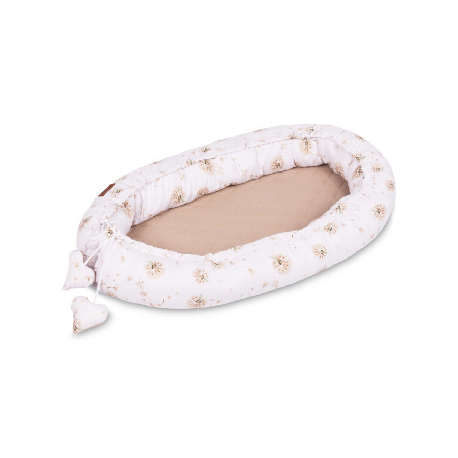С нежния си бежов цвят и принт с глухарчета, гнездото е не само функционално, но и красиво допълнение към всяка детска стая. Съчетава се лесно с различен интериор и е чудесен подарък за новородено.